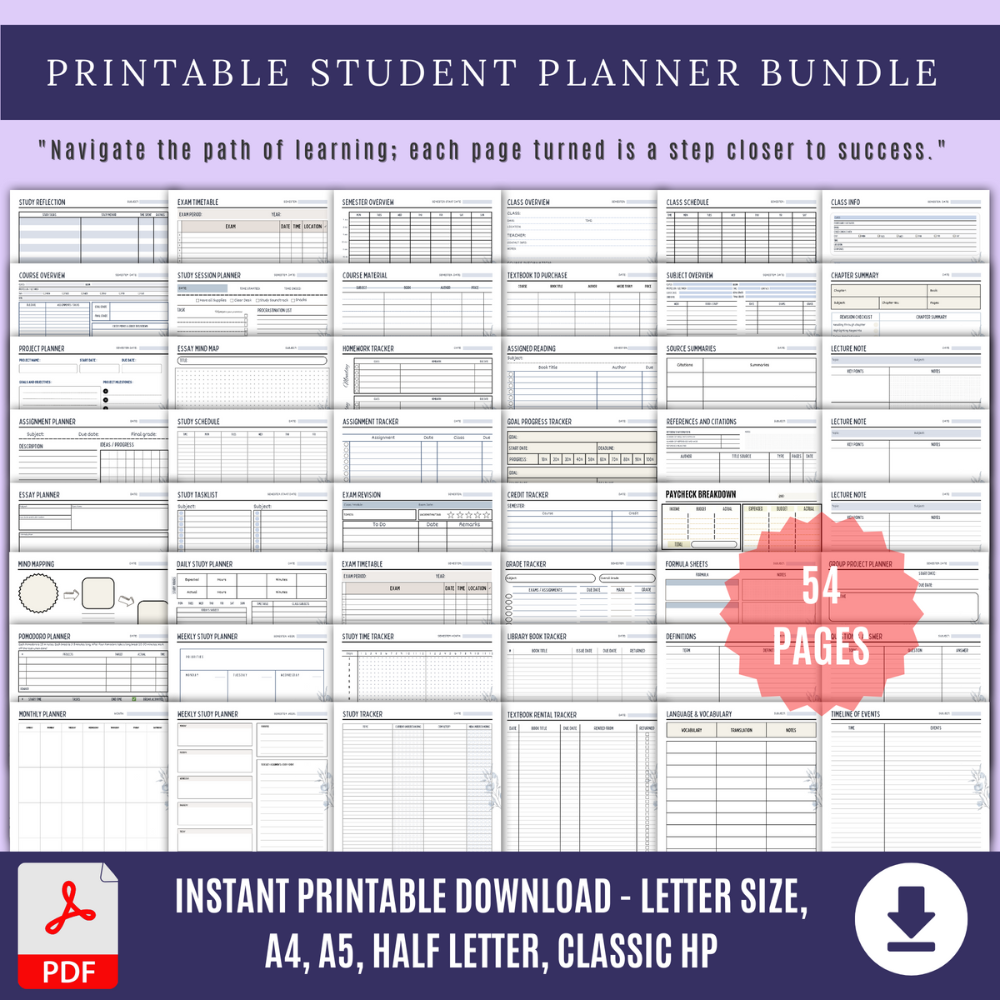 Printable Student Planner, College planner, Homeschool tracker, Homework planner, Instant download, School planner 2024