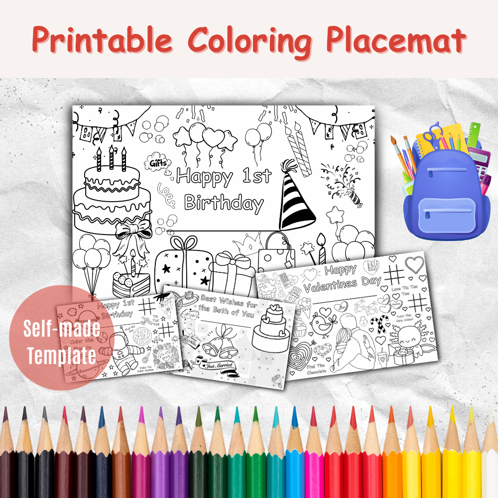 Beyond the dining table, these placemats can be used for various activities. Ideal for playdates, parties, or even as a creative learning tool, they add a touch of artistic flair to any occasion. Roll them up for easy storage or take them on the go – the possibilities are endless!